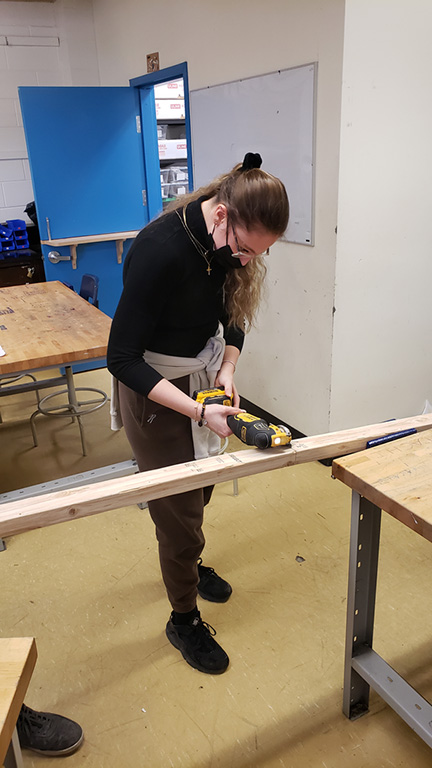 Un nouveau projet prend donc forme depuis janvier: réalisation de meubles pour héberger les jardins distribués dans l’école. Le meuble conçu inclut le support en hauteur des lampes pour les plantes et est escamotable pour passer les cadres de porte lorsqu’on le déménage. La production se fait au LAB Créatif par le biais d’activités d’initiation à la menuiserie.