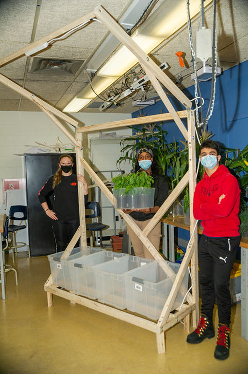 Un midi au début du mois de décembre 2021, une équipe de 5 élèves demandent : « On vient de semer des courges, des carottes et faire une récolte de basilic… Est-ce qu’on peut essayer de semer le maïs sucré aussi? »